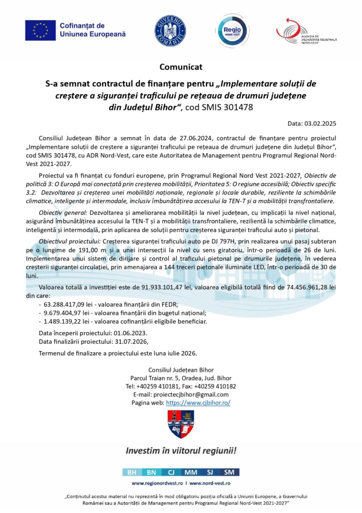 Lansarea proiectului: „Implementare soluții de creștere a siguranței traficului pe rețeaua de drumuri județene din Județul Bihor” 25 noiembrie 20253 februarie 2025 de EU Monitor